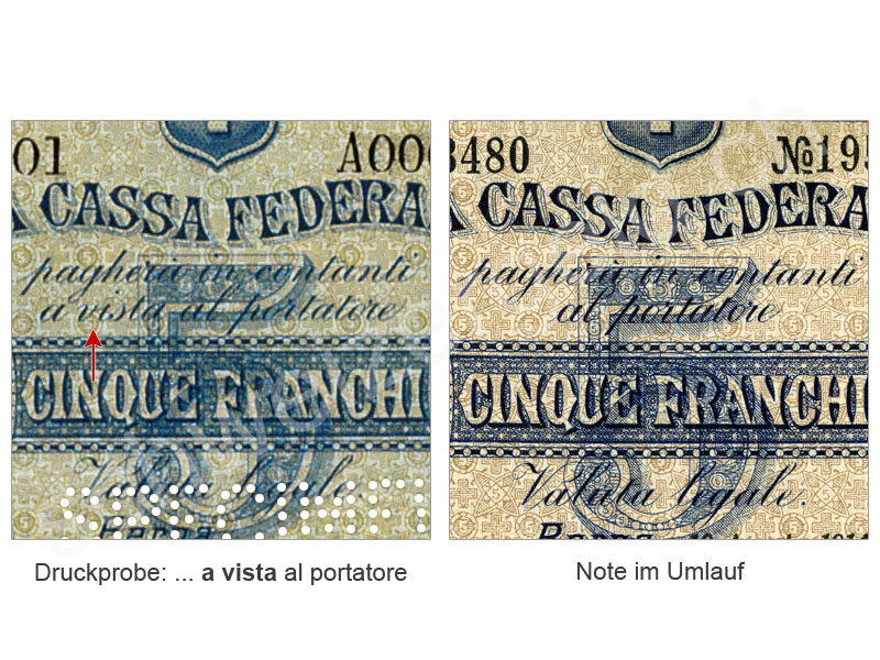 Loch-perforierte Druckprobe in italienischer Ausgabesprache.