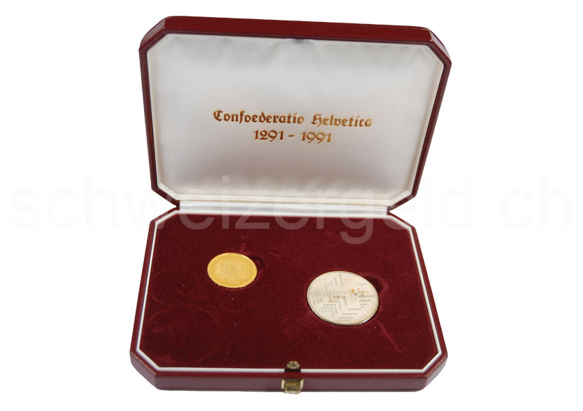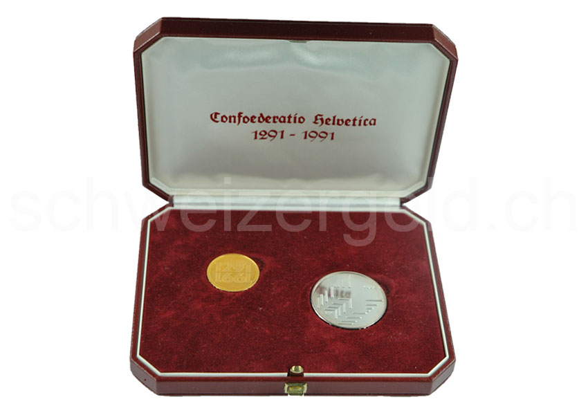Set with gold and silver coin.