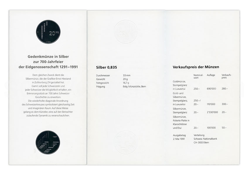 20 francs, 1991, Silber