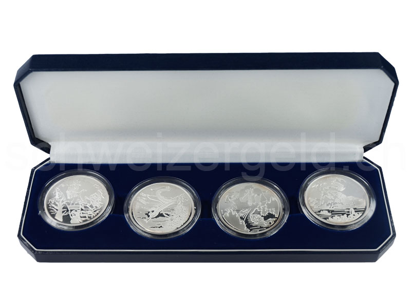 Set with four silver commemorative coins of the series Landscapes and Legends.