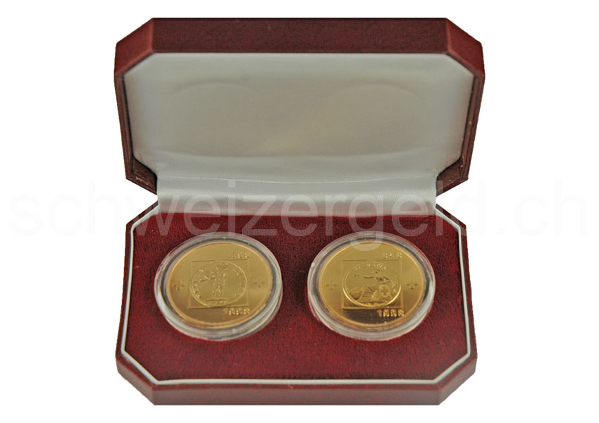 Set of two gold commemorative coins.