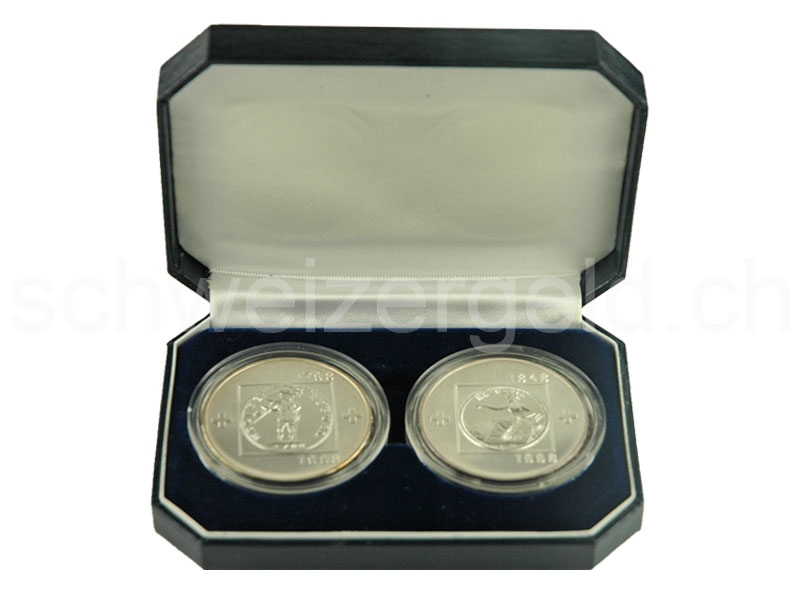 Double case with two silver commemorative coins.