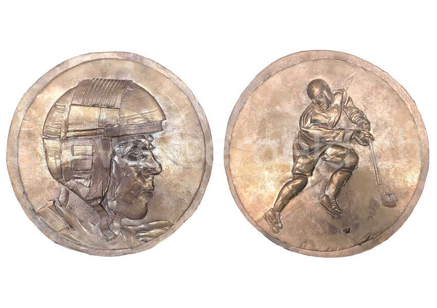 Jeu avec les moulages en bronze d'avers et de revers de la médaille de 1990.